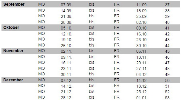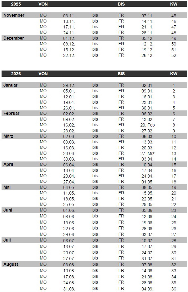 • Kalenderwochen
